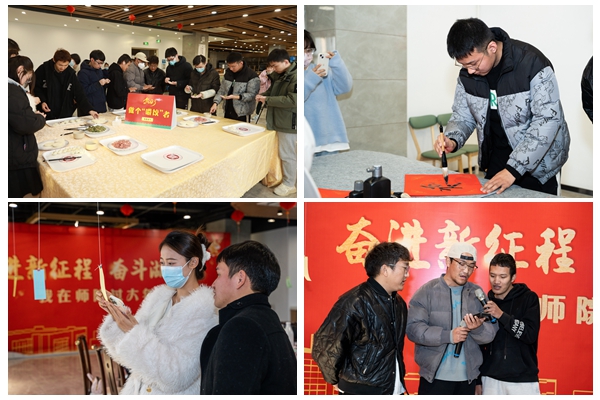 今年春节,我校共有14名同学因科研、实习等原因选择留校过年,没有回到亲人身边,但他们在学校也感受到了浓浓的过年氛围。学校为留校学生精心准备了丰盛的年夜饭,并为大家送上了暖心大礼包和象征如意安康的福字。活动现场还重点凸显国潮元素,组织师生共写兔福,齐包饺子,共猜灯谜。学校还特意录制了师长、亲人的祝福视频,贴心的话语、真诚的祝福让大家感受到了学校的用心。