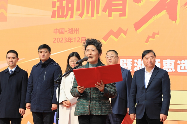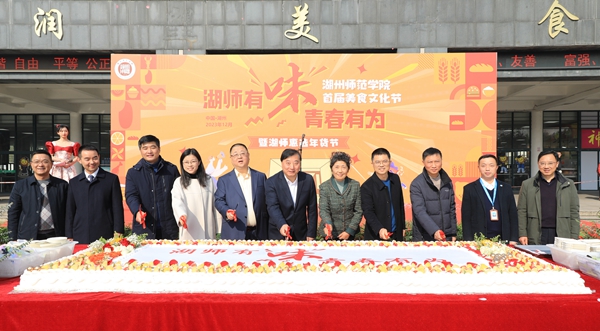 12月27日上午,校首届美食文化节暨湖师惠选年货节在东校区隆重开幕。校党委书记金佩华,副校长潘音出席,湖州市餐饮商会、湖州市机关事务中心等单位负责人应邀参会,宣传部、学生处、团委、后勤服务中心等部门负责人,以及南京梅花餐饮管理有限公司、浙北文旅事业部等企业代表负责人参加开幕式。